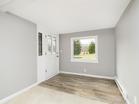 Rare Find! Beautifully updated 2 bedrooms/1 bath ranch home on over an acre near Eagle Creek Park. Upon entering, you'll find a welcoming breezeway which connects to spacious Great Room & KIT. Lrg KIT w/ stnlss steel appliances & pntry. Remodeled full bath w/new double vanity & tiled tub/shower. Fresh paint & new floors, as well as, new AC & baseboard heaters w/programmable thermostat. Exterior has been completely updated in last 2 years with new roof, siding, windows & gutters. Wonderful outdoor living w/3 seasons room, fruit trees, partially fenced yard, walking distance to the park, storage shed, plenty of parking, heated 2 car attached AND 3 car detached garage perfect for the outdoors person/boater/hobby shop. All of this with no HOA!