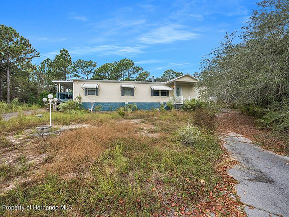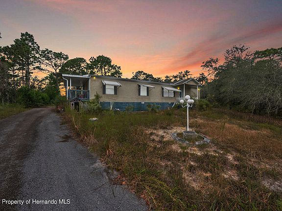 Welcome to this cute home that's a diamond in the rough with it's just under an Acre and a half of land, sitting on 1.20 acres. Located in Brooksville with 1800 living square feet. located peacefully in a rural area, with enough space to stretch out. Great for those with large toys, whether it's an RV, boat, or extra cars. When first approaching you'll notice the double drive way that is a distance from the road so you won't be bothered by passing traffic. With an entrance at the front and left side of the trailer has ramp access. Laundry room is to the left of the house with a spare half bathroom. Continuing in to the home you'll then be greeted by a large kitchen with a breakfast bar that acts as a separate room from the dining room next to it. With the two guest bedrooms with large walk in closets, that share a bathroom with a shower tub combo. As we make way through the kitchen the dining room opens into the living room with fireplace, and large window fronts providing an abundance of natural light. Then we make our way into the primary bedroom which has an attached office, or could be used as a nursery, for the new mother, or for the person that works at home. Don't miss out on this property and it's gorgeous land. It's for sure to be gone soon.