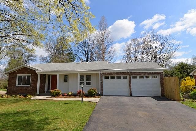This totally updated mid century modern home was architect designed and custom built in early 1950's. It has recently been upgraded with a new roof, new driveway, new hot water heater, new dishwasher, and other plumbing fixtures. It has four bedrooms, two full baths, a sleek kitchen with 2 car attached garage on established cul de sac in great neighborhood in Windy Hills. Convenient to Watterson Expressway between Brownsboro Rd exit and Westport Rd exit in east end of Louisville. This home has a basement with laundry (W/D included) and lots of shelves and space for storage. The split level design offers many windows and abundant light throughout the home with a large open family room on the upper level under 15 foot ceilings in addition to a large living room down. Plenty of private outdoor living space in fully fenced backyard with sunken deck and concrete patio. There are several closets throughout. In addition to closets in each bedroom it also includes two linen closets and a large coat closet at front entry and rear entry. The two full baths are finished in tile and are sparkling bright. Shower in upper bath, tub/shower in lower bath. The kitchen includes new dishwasher, microwave, disposal, wall oven, four burner stove top, and ice maker in large SS side by side refrigerator as well as a large pantry cupboard. Lower level is carpeted, mid level is all tile, with hardwood floors throughout upper level and bedrooms. This home is in excellent condition and has been immaculately cleaned. It is available now for $1950 per month with one-year lease. Well-mannered pets considered. $35 per month pet fee. One month's rent as deposit. Application and good references required, credit report fee $40.