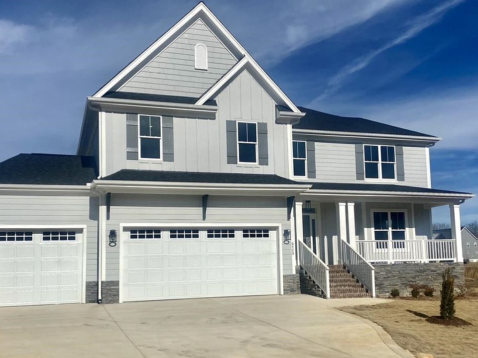 Modern farmhouse flair with large rocking chair front porch welcomes you home to The Birch a comfortable, open concept design. Ideal to entertain with gorgeous kitchen with butlers pantry. Separate dining areas flaked with columns & extensive trim details. Chef kitchen with huge center island. The family room features a modern farmhouse feel with its unique and inviting fireplace. Venture upstairs to enjoy three large bedrooms with spacious closets. The owner’s suite features stunning ceiling details and a spa like bath with huge walk in closet. Large windows highlight your private yard ready for outdoor entertainment. Room for a pool so bring your towel.