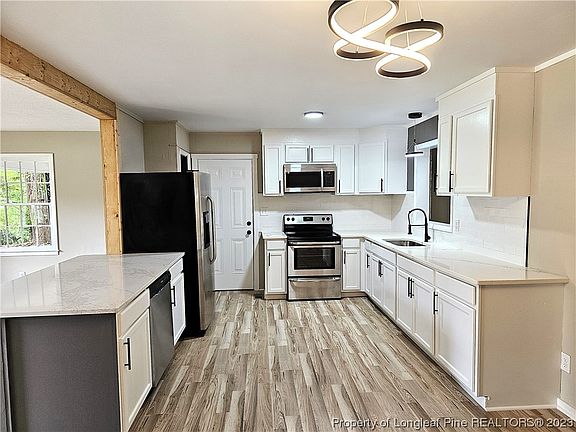 This spacious 4 BR 2 bath ranch home in close proximity to Fort Liberty is a real treat and escape from the hustle and bustle. It includes a new HVAC system, duct work, new cabinets, fresh paint, new flooring, new appliances, counters, lighting and fixtures. Additionally, its backyard offers plenty of room for outdoor entertaining or focusing on your favorite projects in the backyard workshop. Yes, there is a workshop included! This updated and immaculate renovation makes it move in ready. At this price it’s a great time to start realizing the American Dream of owning your own home. Call 919-824-3057 for a private showing before this gem is GONE! Agent has interest in the property.