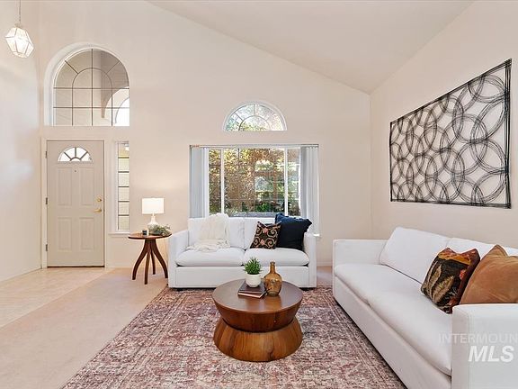 Nestled in the coveted Silverado Ranch neighborhood, this home boasts comfort and lush landscaping with the privacy of a quiet cul-de-sac. The airy main floor floods with light from oversized windows and vaulted ceilings perfect for gatherings. The kitchen shines with a spacious pantry, gas range, island, and ample cabinet storage. Retreat to the primary suite with a private balcony, dual vanities, and vaulted ceilings. Host summer BBQs on the large back patio, surrounded by mature fruit trees (apple, pear, cherry), grape vines, vibrant landscaping, and expansive backyard. The 3-car garage offers plenty of storage. Just 5 minutes to Micron, and a short walk to hiking trails and the Simplot Sports Complex. Silverado Ranch Subdivision includes access to the community pool, tennis court, gym, racquet ball court, and clubhouse with lush green spaces, and walking paths.