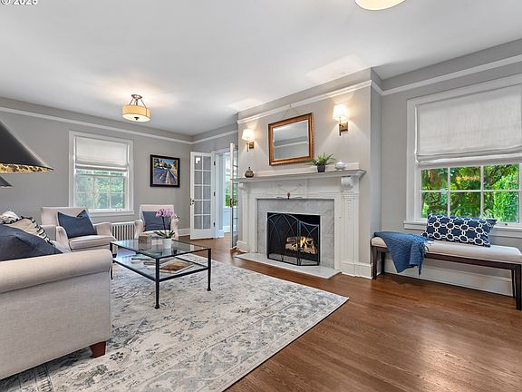 The historically significant Julia Groo House—better known as The All Electric House—is one of the most beloved homes on Eastmoreland’s coveted Reed College Place. Designed by award-winning English architect Charles Dearman James in the Colonial Revival style, this neighborhood treasure blends timeless character with modern comfort and exceptional functionality. Set on an expansive double lot, this breathtaking property has been lovingly maintained, meticulously restored, and thoughtfully updated. The unparalleled elegance of the 1920s shines through oak hardwoods, leaded glass, built-ins, high ceilings, wide baseboards, and picture moulding, while today’s essentials include a serene primary suite, an open, remodeled chef’s kitchen with premium finishes, luxe baths, and newer HVAC systems for efficiency and peace of mind. Four levels of living space offer versatility and room for all: a sun-lit family room with walls of windows on the main, a fully finished recreation/media room below, and a top level bedroom perfect for guests or a quiet home office. The outdoor areas are equally enchanting: two viewing decks on the second floor offer peaceful vistas of the neighborhood’s historic canopy, and a private backyard provides an inspiring backdrop for gatherings, play, or simple relaxation in any season. Rarely does a property combine architectural significance, impeccable restoration, and modern livability quite like this. Here is your chance to own a piece of Portland history and become part of Eastmoreland’s close-knit community, just moments from parks, schools, the golf course, and all the amenities in Sellwood/Moreland and Woodstock. Open Sun. 10/19 from 11am-1pm. [Home Energy Score = 2. HES Report at https://rpt.greenbuildingregistry.com/hes/OR10029609]