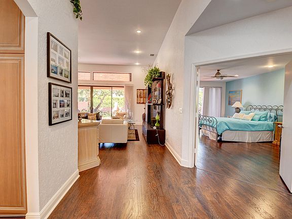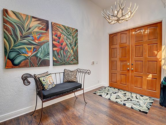 This is a gorgeous remodeled home from floors to Kitchens and baths. Bring your buyers , they will not be disappointed. This is the expanded Capri model with large covered patio on a very private lot with lush landscaping all around. The home boasts new accordion hurricane shutters and a whole house water softener. Plenty of updated custom cabinets and custom master closet to maximize usable space.