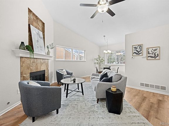 This stunning ranch-style townhome in Autumnwood boasts a series of thoughtful updates that enhance its appeal and functionality. The interior shines with main level new flooring, complemented by fresh countertops in the kitchen and bathrooms. Fresh paint, new carpet, and modern light fixtures breathe new life into the upper living spaces, ensuring a refreshing atmosphere. The living room is a highlight with its vaulted ceilings and gas fireplace, while the primary bedroom offers the same spacious feel and includes an ensuite bathroom. The privacy of your own patio, which leads to a spacious community yard, adds to the home's allure. The fully finished basement expands your living and entertainment options, while a 2-car garage provides ample space for vehicles and storage. Positioned in a desirable part of Arvada, this property is an incredible find, offering proximity to shops, restaurants, and a straightforward drive to the mountains, all enhancing your lifestyle without compromising convenience or comfort.
