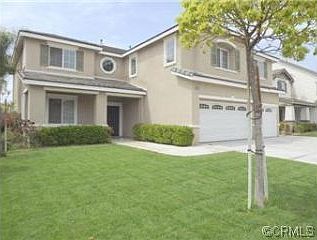 This beautiful home offers 5 bedrooms and 3.5 baths. Brand new carpet! One bedroom downstairs with full bath. Large living room, family room with fireplace and half bath are downstairs. The downstairs also offers a den. Extra large master bedroom has retreat area! Two walk-in closets and big master bath with separate tub and shower. Huge loft upstairs for entertainment. Very spacious and airy! Cathedral ceiling in entrance! Excellent floor plan! Large kitchen island with beautiful granite counter tops. Lots of cabinets! Walk in pantry in kitchen with many shelves! Large backyard. 3- car garage and RV parking space! Easy access to freeway 15 and 60! Square footage not taped - tenant to verify.