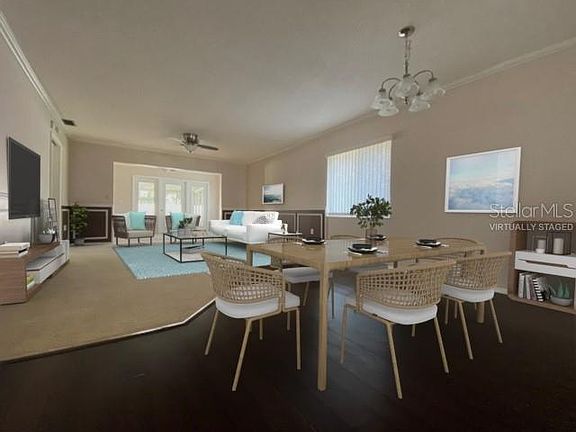 - Interior Features: Ceiling Fans(s), Eating Space In Kitchen, Split Bedroom, Walk-In Closet(s), Solid Wood Cabinets, Living Room/Dining Room Combo, Solid Surface Counters, Window Treatments