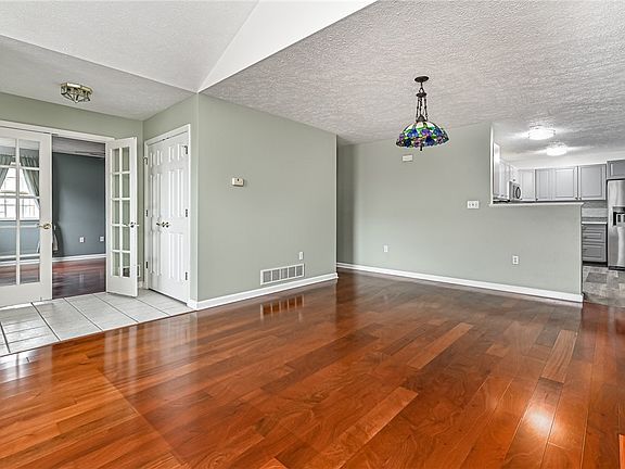 The Seller is offering to pay the first 4 months HOA fee. A wonderful charming neighborhood with tree-lined streets in Jefferson Pointe. This home has been professionally painted with Sherwin WilS This lovely unit has 1596 sq feet laid out with one-floor living with a bonus room upstairs. Updated kitchen and flooring. This patio home also includes a den on the first floor. There are 2 full bathrooms in this home with walk-in showers. First-floor powder room. The upper-level bonus room can be used as a second bedroom or craft room. Walk-in laundry room with tub. Oversized garage with shelf. The wall-to-wall carpet needs replacing. Lovely gravel and an awning outdoor patio. Jefferson Pointe has wonderful amenities such as a private pool clubhouse and Gazebos. The HOA fee includes snow removal in the private driveway maintenance, roof, gutter replacement/repair, exterior repairs (not including windows), common walkway, beautiful landscaping, and common insurance.