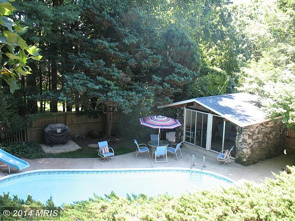 Create the lifestyle of your dreams ! Contemporary stone home on wooded, one acre lot. Awesome view from your wrap around deck overlooking private inground pool and poolhouse. This is a fantastic home ! Features two woodburning fireplaces, gorgeous wood cathedral ceilings and hardwood floors , two - two car garages. Home sits up on hill with a circular driveway.