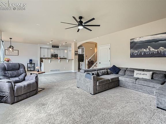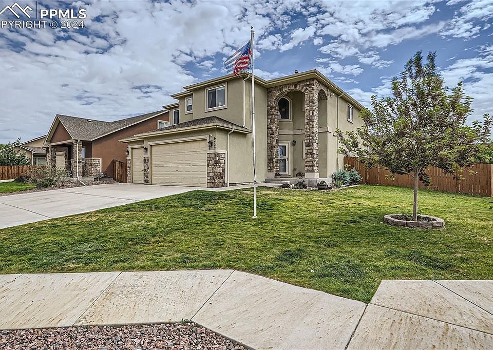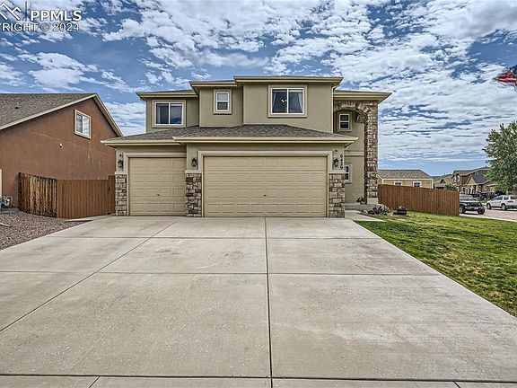 *** Looking for a GORGEOUS home with room for everyone, a big yard, plus a 4 car garage? Right here! This 5 bedroom fully upgraded home has loads of curb appeal, with a striking stucco & stone exterior on a large corner lot * Getting a Brand NEW roof! Pretty front porch, perfect for enjoying your morning coffee and gazing at Pikes Peak * As you step inside, there's a wide foyer and elegant lines & architectural details, like the iron balusters on the staircase * Modern, open concept layout on the main level * Big & beautiful kitchen with stainless steel appliances, walk-in pantry, loads of counter & cabinet space (42" upper cabinets give you extra space) plus seating at the island counter * Check out the Smart fridge - included * Large breakfast nook * Welcoming Great Room with gas fireplace, modern ceiling fan, and lots of light through the big windows overlooking the backyard * Upgraded lighting fixtures throughout * Sought after floor plan with 4 bedrooms PLUS Laundry all on the upper level * Spacious Primary Suite with recessed ceiling, attached 5-piece bath with walk-in closet, plus a skylight for extra natural light as you're getting ready * The full bath off of the upper level hallway has double sinks at the vanity, and a doorway into a room with the toilet and shower/tub (to accommodate busy mornings when everyone is trying to get ready at the same time) * Fully finished basement with the 5th bedroom, Rec Room/living room and another full bath * Oversized 4 car garage is 3 cars wide with a tandem 4th bay * The backyard is where it's at: Huge fully fenced backyard with wide stamped concrete patio that extends all the way around the side of the home * Fantastic hot tub included * Separate fenced area around the big 12 x 12 storage shed, perfect for protecting a veggie garden or using as a dog run * Extremely well thought out details will delight you throughout this home. Prime location with easy access to Powers & I25, plus Peterson, Schriever or Ft Carson.