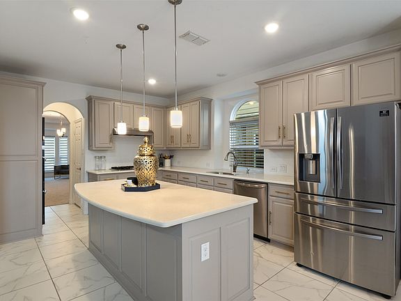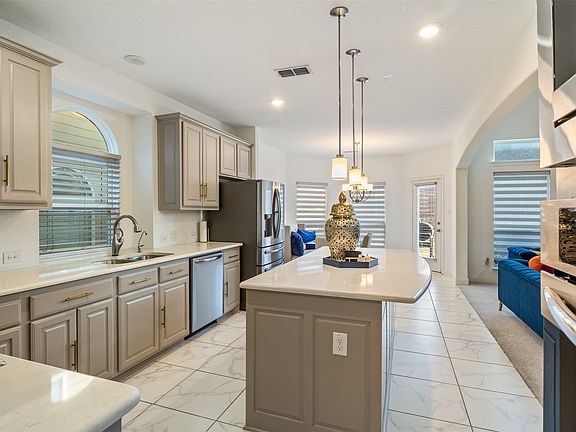 Stunning 5 bedroom 3.5 bath home with a 3 car garage thoughtfully designed for modern living! From the striking stone exterior and iron front door to the sleek 4mm quartz beveled edge kitchen countertops no detail was overlooked. The chef’s kitchen features 5 gas burners a double oven built in microwave cabinetry and ample storage.