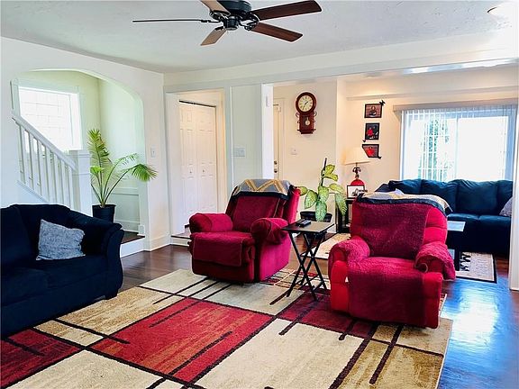 Less than five minutes away from all that the Oakmont area of Pittsburgh has to offer, this brick beauty of Penn Hills leaves a lasting impression. After passing through its well manicured front lawn and striking red door, you're greeted by an open floor plan. A seating area just as you enter, is followed by a living room showcasing a stately fireplace. The floorplan then naturally flows into the dining room that has access to a sizeable deck overlooking the backyard. The kitchen is bright and open with a breakfast bar and stairs leading to the finished basement. Upstairs you'll find a full hall bath, the owner's suite with its own sitting area and full bath, and two bedrooms. The second bedroom has a private balcony and loft. The finished basement has two rooms, a full bath, and utility room with walk-out access to the backyard. In the backyard, there is a two car garage and covered patio. This home is a must see! Don't wait. Schedule your showing today!