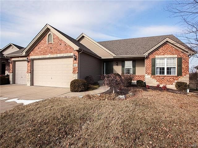 Absolutely stunning ranch style home with brick/stone front located in quiet cul de sac backs to farm land and offers level back yard! This home is very clean, offers an open floor plan with separate formal dining, vaulted ceilings, breakfast bar, custom cabinetry, bay window to back deck, and fresh neutral paint through out. Enjoy vaulted master bedroom suite with walk in closet, bath with double sink, tub and separate shower and ceramic tile flooring! Gas fireplace with brick and stone front in living room, 3 car garage, professionally landscaped yard, updated vinyl fencing, and in-ground sprinkler system. Huge unfinished walk out lower level has rough for full bath, and additional storage area with shelving. Lower level fireplace is non functional, as installation was never completed. All equipment regarding fireplace will stay with the home. This home is a Must See!