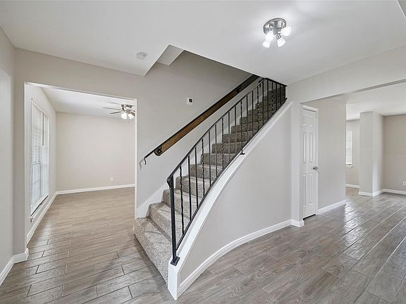 Welcome to this spacious 4 bedroom 2.5 bath home in North Hill Estates! Updated kitchen, primary bedroom with walk-in closet, and dressing vanity. Tile floors on the first floor, cozy living room with fireplace. All bedrooms have ceiling fans. Enjoy the backyard with patio, mature trees, and fence. Ample parking with a long driveway and 2-car detached garage. Great location near I-45. New wood flooring upstairs, new lighting, new panty, interior paint and exterior paint. Perfect for a someone looking for a charming and cozy home in a desirable neighborhood with a huge backyard. Don't miss out on this gem! Pictures are from previous rental.