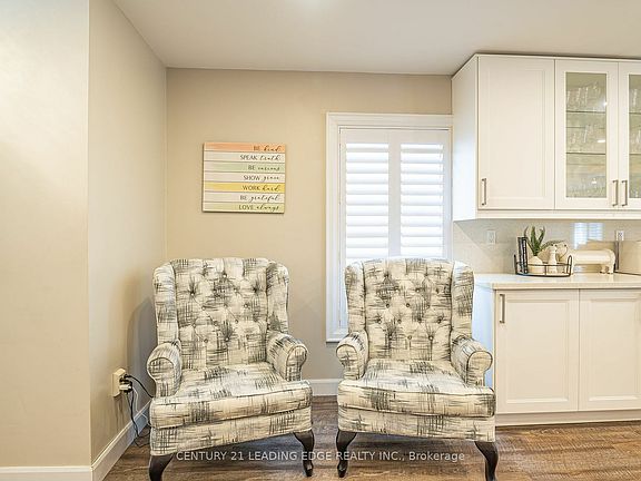 Immaculate 4 bed house with a finished basement featuring 2 bed, kitchen & bath, separate entrance & walk-out potential for extra income. Elegantly renovated main floor, open concept design, pot lights, and continuous hardwood flooring. Kitchen showcases quartz countertops, top-of-the-line stainless steel appliances, built-in oven, microwave, dishwasher, and gas stove, extended cabinetry & large island with a breakfast bar, California shutters adorn main and bsmt floors. Main Bath heated flooring, free-standing tub, stand-up shower, double sink vanity. Recent replaced roof shingle, eaves trough & newly paved driveway. This house is a private heaven, backing onto green space, Gas line in backyard, Laundry connection on 2nd floor. Extended deck spans the width of the house, shed in backyard. Exceptional comfort and style await.