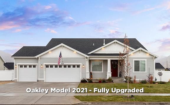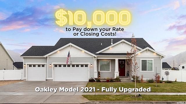 Offering $10,000 towards closing costs or to buy down your rate! Virtual Walkthrough at rem.ax/643hottub ----- Gorgeous & Brand NEW - This Oakley Craftsman Model has the Yard & Fence & RV Pad already added for you! Upgrades Everywhere: 3 Car Garage, Grand Gourmet Kitchen: Oversized Granite Countertops, Double Oven, Gas Range, Extra-Tall Gray Cabinets, Popout Dining Area, Extended Pantry, Huge Windows, High Ceilings, & an Incredible White Tiled Fireplace & Mantle, not-to-mention the Euro Glass Double Shower & Garden Tub in the Grand Master Bath! Enjoy your evenings on the Extended Patio or in the Included Hot Tub under the Breathtaking View of nearby Maple Mountain. Park your RV, Trailer, Jeep, & more in the 150 ft long gravel RV Pad & let your dogs run wild in the fenced-off side yard until you are ready to jump into the Community Pool or go up the Canyon or down to the Lake for Adventure! Square footage figures are provided as a courtesy estimate only and were obtained from Builder. Buyer is advised to obtain an independent measurement.