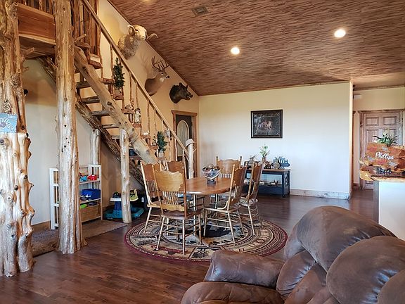 Welcome Home to this beautiful home with breath taking views, perfect sunset and can be enjoyed right from your front porch. this home features cathedral ceilings, with an open floor plan. Enjoy the view from the windows of your living room. With two large bedrooms on main level, master featuring custom cabinet and shower. bonus room/office off from master with access to outside (private entrance). a loft style bedroom on second level. Guest bath has custom large shower. home has over 3000 sq. feet and includes a large storm shelter, home has concrete walls built on slab with reinforced rebar, cedar siding. Well built and ready to move In, enjoy the back porch for family cook outs or smoke that family meal in the custom built smoker. This property also includes a 2400 Sq. ft shop with lift, and a 1640 Sq ft. double wide, has a rented lot for a single wide. and 1200 Year income from rented camper space, this all situated on 40 Acres . Don't miss this amazing home. Call today!