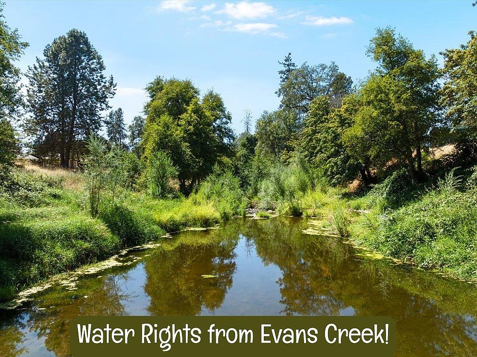 Enjoy year-round Evans Creek frontage plus transferable Water Rights from Evans Creek—a rare and valuable asset for gardening, livestock, or your small-farm vision.