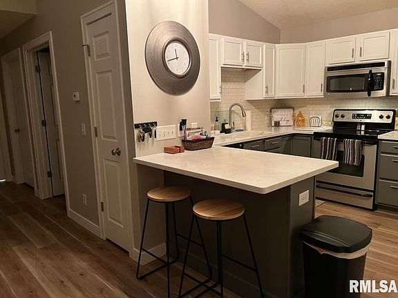 Squeaky clean top level 2 bed, 1 bath, 1 car garage condo unit in central Davenport, IA. Vaulted ceilings, white trim, laminate flooring, new light fixtures, gas fire place and in unit laundry make this the perfect unit to live in or as an investment, rentals are allowed. Beautiful kitchen recently remodeled, stainless steel appliances, tiled backsplash and fresh paint/carpet through out. This unit shows really well and will go FAST! All appliances stay!!