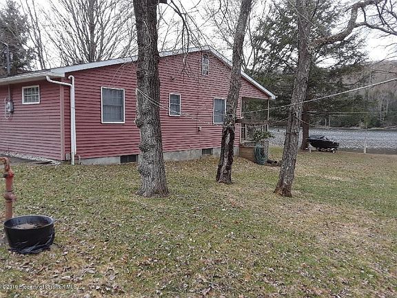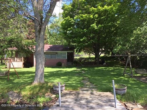 This is a very lovely lakefront home. Modern kitchen/ dining room combo. The kitchen features an dual electric wall oven. The living room has a cozy pellet stove enclosed in a bricked wall. the bedrooms have a warm country charm to them that will make you feel right at home from the start. Large deck with different levels with a closed in porch on the back and an open deck. There is also a stone patio to sit and enjoy a view of the lake. Furniture, boat and canoe included. There are 2 sheds for storage on the property. Gas rights convey to the new buyer.