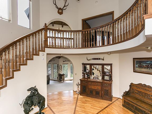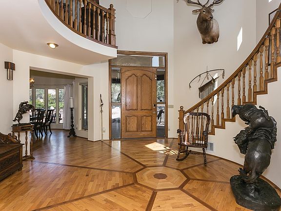 RATES IN THE 4's? Yes! Save hundreds of $ each mo! Wonderful area to live - NO HOA - Private yet close to downtown with spectacular panoramic views of the city lights, national forest and a glimpse of Capital Canyon 4th hole. Several outdoor areas to enjoy the natural beauty. This custom built home is truly special and unique. Breathtaking entry with a grand staircase, Pella windows throughout. Huge open beamed ceilings and herringbone hand laid oak floors. Single level living with two master suites - One downstairs and one in the 650 Sf second floor. Also 2 bedrooms with Jack and Jill Bath. Private yard with natural landscaping and boulder outcroppings. Circular drive and plenty of room to easily park a 40'RV. This is one special home - Come and take a look before it's gone