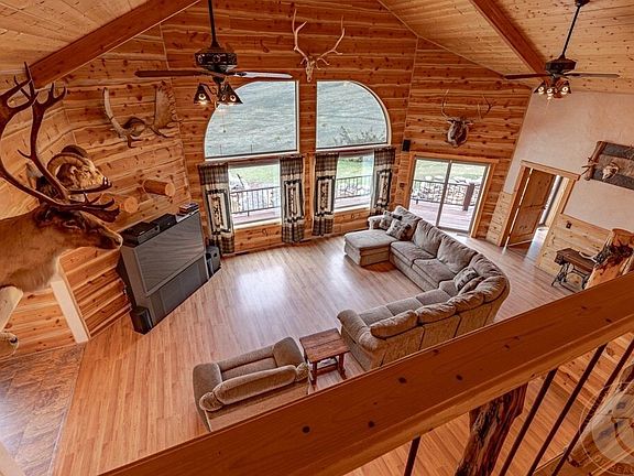 Nestled in the serene MT countryside w/ peaceful silence & big sky starry nights, this 61+/- ac dream prop is just 6 mi from charming Absarokee. Wake to stunning Beartooth Mtn views & horses grazing near your log home, full of rustic charm, exposed logs, & elegant arched accents. W/ 3 levels, the home offers 3 beds, 3.5 baths, & 4 bonus rms. The vaulted-ceiling living rm feels open & welcoming. A spacious kitchen & dining area w/ dual ovens, JennAir cooktop, island, & hickory cabinets is perfect for daily life & entertaining. Outside, enjoy a 30x40 barn w/ 12x40 lean-to for animals & equip. Land yields one cutting of dry land hay, ideal for horses. Embrace the tranquility, beauty, & lifestyle of MT living where mountain majesty meets country peace.