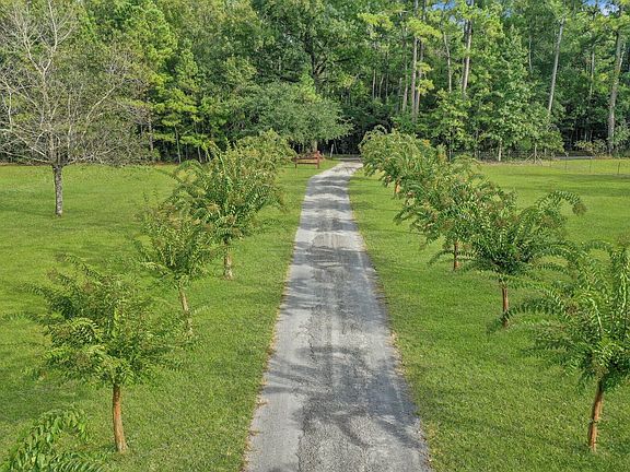 Woodworkers and outdoorsman's dream. 5 acres that connect to 40 acres of land owned by the US Forest Service. A hunters dream. The main workshop is 36'x24 (864sft) and is set up as a woodworking shop. Built in benches convey so just bring your tools. The second workshop is 20'x16' (320sft) and has a half bath. Most of the land is cleared, fenced and has producing pecan trees, a crepe myrtle lined drive, and gorgeous mature oaks. The home welcomes you with a full front porch and an open floor plan. Built in bookcases are on one wall of the living room, with a gas fireplace on the other. The kitchen has ample counter space, upgraded appliances including a Bosch dishwasher. The owners suite has a WIC, outside access, dual vanities and a build in desk. The laundry room and half bathLead out to the oversized two car carport. The carport offers a cooking / grilling area on one end. Many parties have been hosted under this carport. Nearly is a large oak that is perfect for extra outdoor entertaining space. Add picnic tables and swings under the oak canopy and you can enjoy a morning cup of coffee or the quiet evenings. There are two wells, one shallow and one deep. Everything is currently connected to the deep well. Water is run to the fenced garden area (with an electric fence to keep the deer out.). There are two septic systems. One for the house and another for the garage half bath and a sewer hookup for a camper. This home is gorgeous and there is plenty of room for boats, RVs, ATVs and tractors with the outbuildings to store them. A quarter acre is on the opposite side of the road that is wooded and the perfect place for a deer stand. This is where the property backs up the to 40 acres owned by the US Forest Service. Recent appraisal in hand for list price. Don't miss this rare opportunity for move in ready home and workshops!