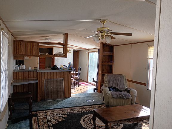 New water heater, heat and ac units. Secluded two bedroom mobile home with beautiful view, two car garage, and storage barn. Please contact for more details. Renter is responsible for electric, gas, water, and sanitation. Renter is responsible for Grounds keeping within the fenced area as well.