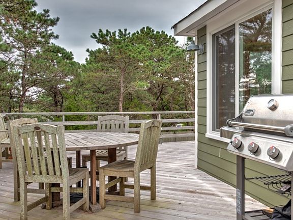 This recently renovated two-story home features 3 bedrooms and 2.5 baths and is surrounded by Napeague Bay and State Park, and just across the road from the private driveway is a large pond for kayaking, paddleboarding and more. The entry from the driveway takes you upstairs into the bright, open living space with a potbelly stove, the eat-in kitchen with granite countertops, new appliances, and dining table, and sliders out to the wraparound deck with a grill. Also on this level is the master bedroom suite that leads to a study. A second entrance has a convenient outdoor shower that follows through to the laundry room which opens up to a living area with steps leading to the master bedroom upstairs and another bedroom downstairs. Nearby are bay and ocean beaches and the Napeague Stretch for shopping and dining.This property has a max occupancy of 5Please note: Additional date ranges available upon inquiry