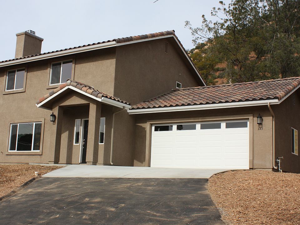New construction home in Harbison Canyon with some 9 foot ceilings and fire sprinklers throughout. Millard double pane windows, all with blinds, recessed LED lighting and air conditioning; all offer high energy efficiency. Seamless rain gutters and tile roof. Granite counter tops thru out. Wood burning built in fireplace. This home has an open floor plan with a great room and wonderful views.