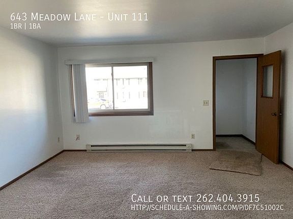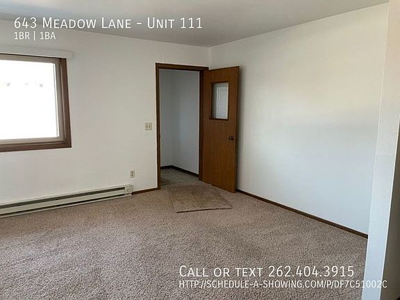 This 800 square foot apartment home has 1 bedrooms and 1.0 bathrooms. This home is located at 643 Meadow Ln APT 111, Burlington, WI 53105.