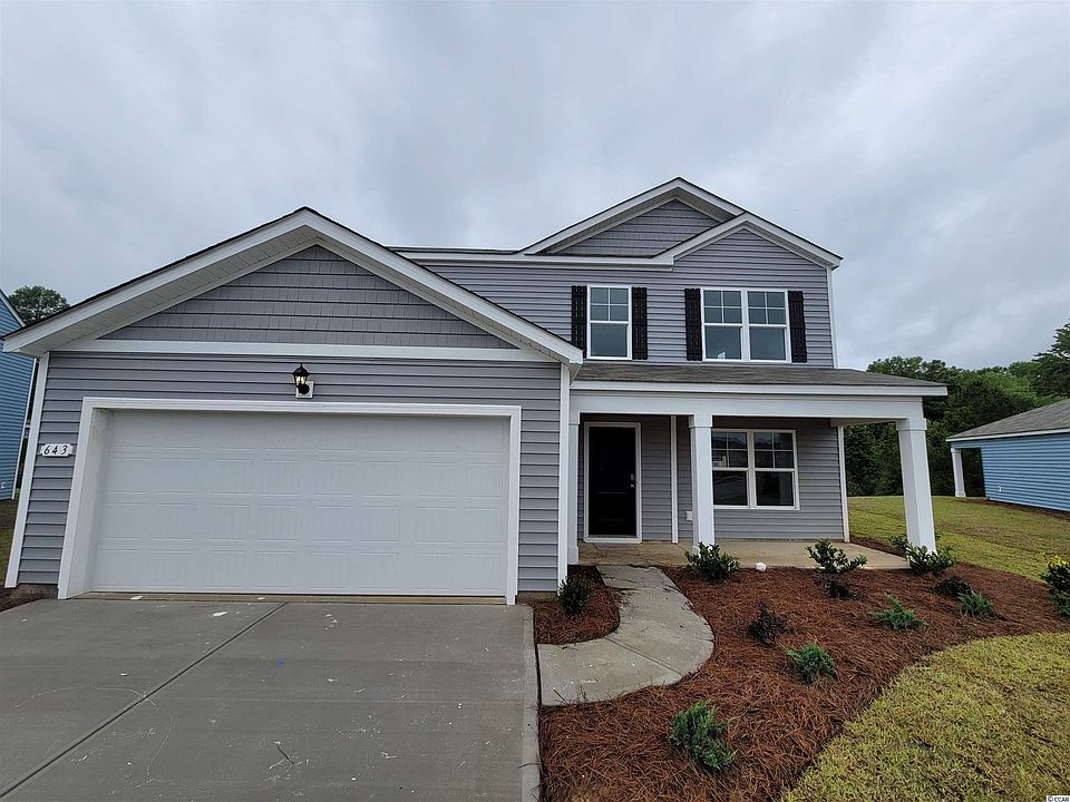 Looking for convenience to all the amenities that the South Strand has to offer at an affordable price? Look no further than Oak Estates East! This community features our Express homes which means your piece of the American Dream is within reach. This Elle floor plan offers plenty of space with room to grow. Featuring a first floor primary bedroom suite with generous bath, walk-in closet, and linen closet. The kitchen boasts a large island with breakfast bar and opens to the casual dining area and spacious family room. Granite countertops, modern gray painted cabinetry, stainless Whirlpool appliances including a refrigerator, and durable flooring throughout the main living areas all included. There is also a flex room with on the main level that would make the perfect home office and sliding glass doors off the dining space lead to the rear covered porch for added outdoor living space. Upstairs offers large secondary bedrooms, a full bathroom, plus an expansive secondary living area. Blinds will be included throughout the house on all standard sized windows and the living room and all bedrooms will be pre-wired for cable and ceiling fans. Two-car garage with garage door opener. It gets better- this is America's Smart Home! Control the thermostat, front door light and lock, and video doorbell from your smartphone or with voice commands to Alexa. *Photos are of a similar Elle home. (Home and community information, including pricing, included features, terms, availability and amenities, are subject to change prior to sale at any time without notice or obligation. Square footages are approximate. Pictures, photographs, colors, features, and sizes are for illustration purposes only and will vary from the homes as built. Equal housing opportunity builder.)