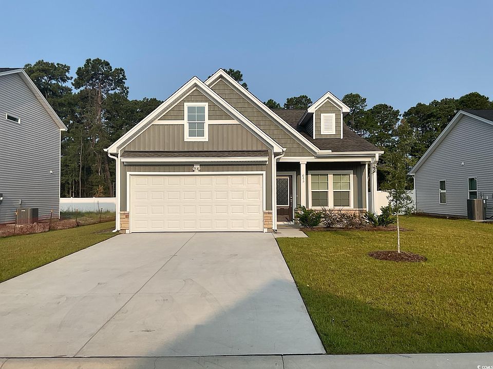 Welcome home to the Brunswick! Step onto the inviting front porch, perfect for lounging in rocking chairs and savoring the essence of Myrtle Beach living. This charming abode features an open family and kitchen space adorned with vaulted ceilings, pendant lighting, granite countertops, and stainless steel appliances. Relax in the primary suite, complete with a vaulted ceiling and a spacious walk-in closet. Both bathrooms boast tile floors, double sinks, quartz countertops, and comfort height toilets for added convenience. Luxury vinyl flooring graces the main living areas, offering durability and style. Conveniently located off 544 and near 31, this home provides easy access to CCU and all that Myrtle Beach has to offer. Plus, it falls within the acclaimed Carolina Forest High School district. Not only will you enjoy proximity to fantastic dining and shopping options, but you'll also be less than 10 miles from the beach and close to championship golf courses, embodying the true essence of the good life.