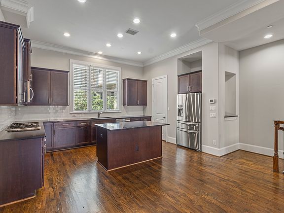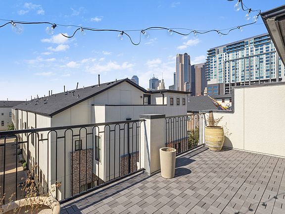 Modern Urban Townhome with Rooftop Views in the Heart of Dallas. Live at the center of it all in this stunning three-bedroom, three-and-a-half-bath townhome, perfectly positioned across the street from The Dallas Farmers Market and just a short stroll to the East Quarter. Step inside to find an open and light-filled layout with soaring 12' ceilings, sleek finishes and beautiful hardwood floors throughout. The stylish kitchen flows seamlessly into the living and dining areas ideal for entertaining or relaxing in refined comfort. Each bedroom offers its own ensuite bath, providing privacy and convenience for residents and guests alike. The spacious primary suite is a true retreat, featuring two generous walk-in closets and a luxurious ensuite bath with dual sinks, a separate shower, and a jetted soaking tub. Unwind on the expansive rooftop deck, where panoramic skyline views create the perfect backdrop for morning coffee or evening gatherings. The community's resort-style pool adds another layer of luxury to your urban lifestyle. Enjoy vibrant city living at its finest walk to restaurants, shops, and markets, all while coming home to contemporary elegance and effortless sophistication.