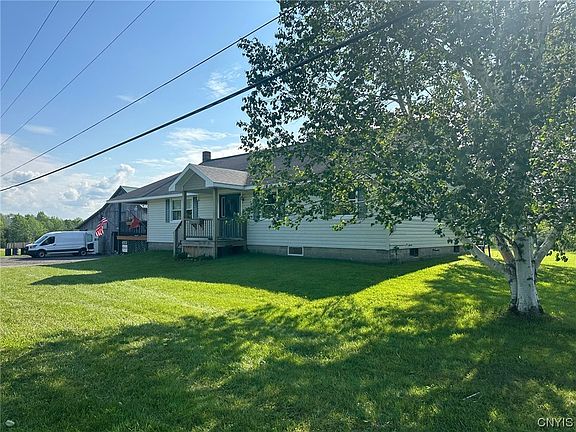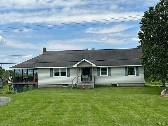 Cute country ranch home that sits nicely off the road on 4.5 acres. This home features a kitchen with dining area (appliances included), living room with french doors to the covered porch, master bedroom with 3 closets, 2 additional bedrooms with loft areas plus full bath all on the first floor. There is another full bath in the basement along with 2 storage rooms and laundry area this is a walk out basement. The heat source is a propane boiler plus there is a coal stove for supplemental heat located in the basement. The garage/barn 40X50 (post and beam construction) with 2 over head doors has plenty of room for your toys plus there is a large storage area upstairs. Off the back of the garage there is additional storage plus another shed. There is amazing outdoor yard space and you will love the covered porch to sit and relax on.