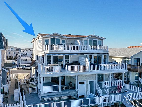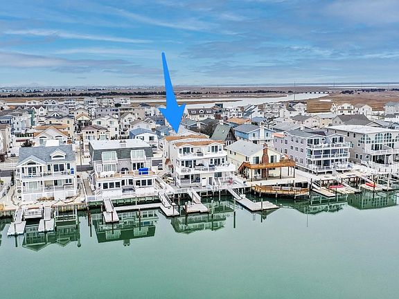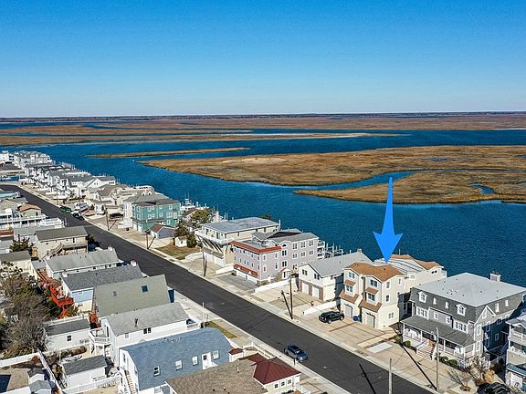 This oversized bayfront townhome offers a tranquil location with unobstructed wide water and cedar island views, 5 massive bedrooms, two deep water boat slips, and immediate access to fast water. Built under an old, less restrictive zoning code, this sprawling property is exquisitely furnished and offers a single family feel in all 5 bedrooms and especially in the second floor entertaining space. The sophisticated, seashore charm is immediately evident upon entering the front door, where a built-in mud cabinet features custom upholstery, high and low storage cabinets, and decorative coat hooks. The first floor features two bedrooms, one is outfitted with a king bed and the other is located on the water and has a sectional sofa AND a queen bed for overflow guests. The latter bedroom offers slider access to a covered rear deck, complete with a hot tub and a seating area. Down a couple steps exists a cedar planked outdoor shower and grade level seating area on the bulkhead, which leads to a ramp down to two large deep water slips. Back inside, a custom stair runner leads you to a massive second floor entertaining space. The renovated kitchen features custom cabinetry, stainless steel appliances, a huge center island with a mitered edge quartz countertops, and a beautiful tile backsplash. The living room is anchored by a gas fireplace and features multiple seating areas, all of which have exquisite views of the bay through a wall of windows and sliders. The second floor deck is covered by a beautiful fabric, mechanical awning and, at approximately 22’ in width, is large enough to have room for a sectional sofa, a dining area and a gas grill. The rear of the second floor contains a street side bedroom and a drop-dead gorgeous bathroom that is adorned with shiplap and contrasting navy paint, a beautiful vanity and striking decorative fixtures. The third floor contains two more bedrooms, both with en-suite bathrooms. The bay side primary suite is expansive, featuring a king sized bed, a desk, a seating area, a fireplace, and a sprawling deck with another retractable awning and some of the best views in the house. The master suite is large enough to offer a double vanity, large shower, a linen closet and a toilet closet - a rare combination in bayfront townhomes. Plenty of off-street parking, a huge garage with additional built-in storage, and rear deck storage make parking and storing everything you need to enjoy Avalon bay life a breeze. If you have been waiting for a bayfront town home to hit the market, you are in luck. Properties on the north side of Sunrise Drive rarely become available because of the unrivaled combination of serenity, view, and access to fast water. Schedule your appointment to see this stunning home before it is too late.