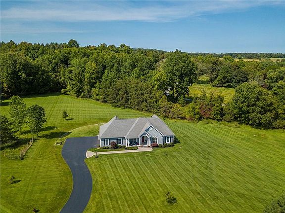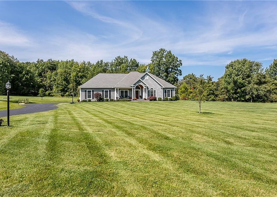 Turn key RANCH on CHOICE 5 acre lot, Custom inside and out, Total privacy, extensive outdoor living with porch, deck, patio, Cherry kitchen, stainless appliances, granite counters, hardwoods, 9 foot ceilings, open concept living, media room, square footage incluides 400 finished in lower level.
