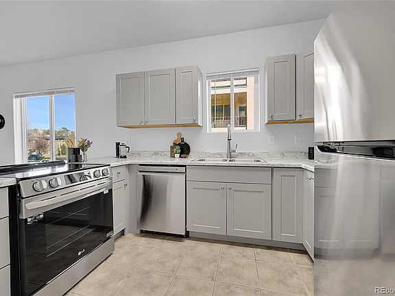Welcome to your remodeled two-bedroom, two-bathroom home nestled in the heart of Littleton, Colorado! This charming condo is south facing with an attached garage and harmonizes modern comfort with practical living, all on the ground level. Discover the new wood flooring in all the living areas, high ceilings, freshly painted interior, and windows that flood the space with natural light. The completely updated kitchen has sleek countertops with brand-new appliances, as well as your washer and dryer. Relax by the cozy fireplace in the living area or unwind on your private balcony with your favorite book. The brand-new air conditioning and heating systems will ensure year-round comfort.