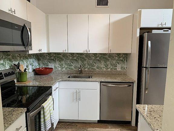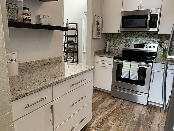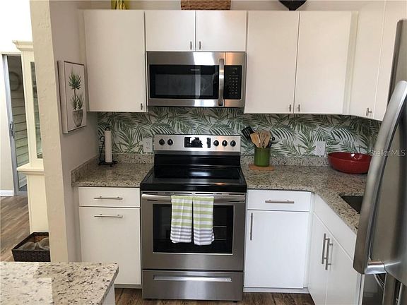 One of the most beautiful and private condos in Bird Bay Village. Located on a cul-d-sac quiet road. This is one of the larger floor plans with aprox. 1200 sq.ft. Original developer calling it a Deluxe. Full two bedrooms and baths. Cathedral ceiling gives great natural light. The large living room/dining area are wide open giving space to spread out. the interior is completely brought up to a modern standard. Living and dining room floors are done in porcelain tile. Updated kitchen with stone counter tops, new cabinets, high ceiling, stainless steel appliances, and porcelain tile. Bathrooms are as modern with ceramic tile floors, stone counter tops, newer fixtures, and base cabinets. Large lanai is protected with framed wind panels (not glass). Bird Bay Village has excellent amenities , five tennis courts, junior Olympic size pools,beautiful clubhouse, pickle ball courts, shuffleboard, great fully equipped gym with TV's, library on site, board-walk along Roberts Bay/Curry Creek and the neighborhood location is excellent near downtown, beaches, airports, shopping and access to I-75