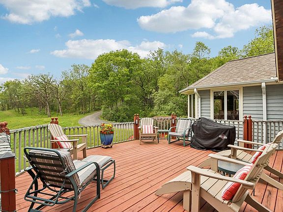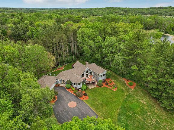 Discover privacy and rural serenity just 5 miles outside of Lake Geneva, WI. This custom-built, walk-out ranch fits-in perfectly with its natural environment. Hills, tall oaks, lovely pines, two nearby ponds and your own seasonally-changing meadow can be viewed through thoughtfully designed, large windows. Inside, the vibe is cozy and homey. It features 2 upstairs/2 downstairs bedrooms, 3 full baths, a custom-built office, an open kitchen area, living room and dining room with terrific views, wood-burning hearth, a front deck just off the kitchen, downstairs family room, spacious storeroom and a walk-out patio. Adjacent 2.28 acre buildable lot available for $169,000. See MLS #1936623.