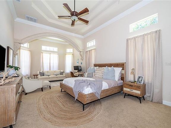 - Interior Features: Ceiling Fans(s), Eating Space In Kitchen, High Ceiling(s), Master Bedroom Downstairs, Open Floorplan, Split Bedroom, Stone Counters, Walk-In Closet(s), Crown Molding, Thermostat, Kitchen/Family Room Combo, Window Treatments, Cathedral Ceiling(s), Vaulted Ceiling(s)