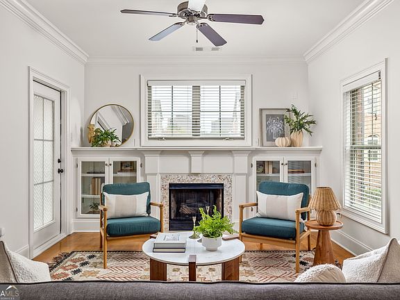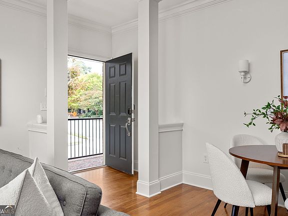 On Chariot Street, this condo welcomes you like a brownstone - with a brick exterior, front stoop, and leafy views that feel both private and connected. Inside, hardwood floors run throughout, leading you into the open living room where built-ins frame the fireplace and sunlight pours in. Just off this space, the kitchen offers plenty of counter space for cooking or spreading out, an island that anchors the room for gathering, and a refreshed backsplash that adds a modern note. From the living room, step out to a balcony - perfect for morning coffee among the treetops or evening cocktails with a glimpse of the skyline. The two-bedroom layout is designed for flexibility with the primary suite on the main level that feels like a retreat. Here, you'll find a walk-in closet, double vanity, glass shower, and soaking tub for when you need to unwind. The lower level provides even more room to spread out with an additional bedroom, generous storage and laundry. With a one-car garage, guest parking nearby, and a welcoming community that makes life easy, this condo balances charm, convenience, and space to grow - complete with a sparkling pool for summer relaxation, plus effortless access to highways, top dining, shopping, and everything Sandy Springs and the Perimeter area have to offer.