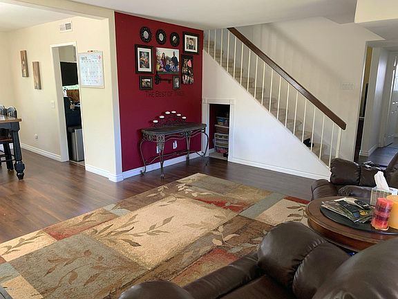Gorgeous 3 bed 2.5 bath Richwood home which has been meticulously upgraded with custom finishes throughout. Well landscaped front yard with stamped driveway, newer garage door and HUGE Paved RV access show this homes pride of ownership. Home boasts over 1800 sq/ft of living space with a great functional floor plan. Downstairs features newer woodlike flooring, granite counter tops, and a striking custom fireplace and mantle. Separate living room, powder bath and a connected family/ dining area round out the downstairs. Large master bedroom showcases a walk in closet with custom built-ins,tiled shower stall in master bath w/ newer vanity. Backyard has a slab patio area, beautiful pitched patio cover, grassy area and an above ground spa. Additional features include newer garage door opener, newer appliances, newer tile floors, all walls and ceilings have been re done, can lighting added to the family room, a gas line plumbed for pool or spa, auto sprinklers with drip system in flower bed, A/C/ Heating approx 7 years old, master shower re done and hot mopped and all of this located in a great quiet neighborhood!