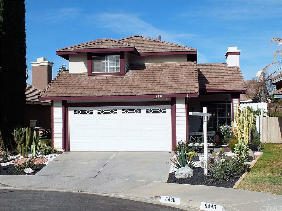 Beautiful 3 bedroom, 2.5 bath cul-de-sac home located in a quiet neighborhood with long established neighbors. This pride of ownership home boasts vaulted ceilings, upgraded kitchen with Corian counters, breakfast bar, gas/wood burning fireplace in the living room, dining area, hard surface "wood like" flooring and tile downstairs. Hardscaped back yard includes a covered patio perfect for entertaining guests and summer BBQ's and features an elevated breakfast patio along with an above ground spa and numerous fruit trees including grapefruit, tangelo and lemon. The large master suite is located on the second level with its own upgraded master bath and walk-in closet. The second and third bedrooms are located on the same floor with a full upgraded bath. Original owner has taken great care of the home and includes numerous upgrades including a 4-ton air conditioner and water heater both 5 years new, upgraded garage door, epoxy garage floors, patio covered garage side door, finished 2-car garage with storage cabinets, 50' enclosed dog run, storage shed in the back yard and security lighting. Very low maintenance landscape includes drought tolerant plants in both the front and back yards. Conveniently located to schools, shopping and entertainment all within walking distance. Enjoy 3 golf courses and golf training center in the immediate area. Close to freeways (91, 60 and 15). Don't wait! Hurry before it's too late! This home will go fast!