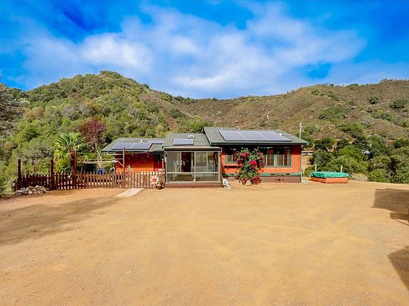 Welcome to this charming home located in the gorgeous out skirts of Morgan Hill! Escape from the city and start enjoying life at this wonderful 2 bedroom 2 bath, 2.6 +/- acre home with amazing views! Located just 3 miles off Uvas Rd. Home is nicely updated with energy efficiency. Kitchen has granite counter tops, soft close cabinets, stainless steel appliances and a Gourmet Wolf gas range. Home has updated guest bath with space heater, tankless water heater, wood burning stove, newer heating and cooling heat pump, new efficient washer and dryer, 10,000-gallon water tanks and a leased solar system. Attached to home is new Four Seasons insulated Sun Room. Not included in homes sq.ft. This is perfect space for an office, workout room or yoga or all three! Outside the home, you will find a great outdoor patio with pavers, ponds, plants and trees. Around the property, you will find a shed, storage, office trailer and garden. All this nestled in the gorgeous hills of Morgan Hill.