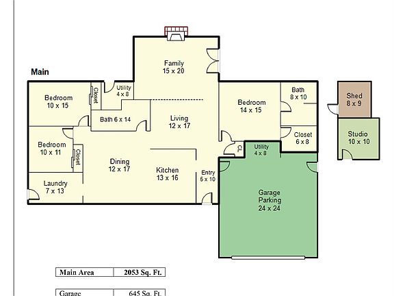 - Total structure area: 2,053