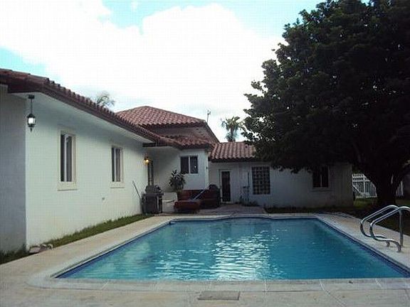 Lovely Mediterranean style home in South Miami in established neighborhood, minutes to everything! Expansive great room allows light to flow in from every direction. Beautiful kitchen with new stainless steel appliances, new bathrooms, travertine & wood floors are just a few of the extras. House was remodeled in 2007 and new roof added at that time. Impact windows and French doors lead to a very spacious 10,650 sf yard with sparkling pool and expansive patio area, perfect for entertaining.
