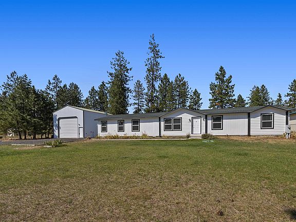 Out of the city and into a peaceful country setting! This spacious and updated, one owner home is on a large lot with a fantastic shop! 4 bedrooms and 2 bathrooms with almost 1900 sq. feet of living space all on one floor. Featuring a formal living room and family room with vaulted ceilings and an abundance of natural light. New carpet, flooring, paint and hot water tank. Large eat-in kitchen, brand new appliances, center island and a pantry. Huge primary bedroom with double closets, a sitting area or home office, on-suite bathroom with double sinks, soaking tub, and shower. Bring your toys - RVs, Boats, ATVs with plenty of parking. Ready for a man cave, home office or she shed in this 24x34 shop! Sitting on a concrete pad, 14ft high door with a 12x14 loft. Equipped with electricity on its own 100 amp panel, plumbed with a sink, hot water tank, ready for a toilet and finish to fit your needs. Only about 20 minutes from North Spokane and less than 10 minutes to Suncrest or Willow Bay resort on Long Lake.