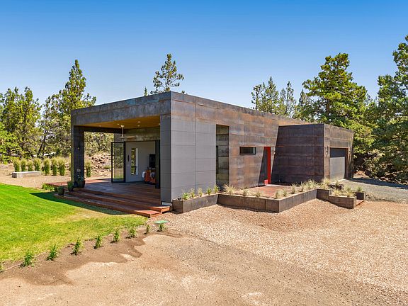 Let your imagination run wild as you witness the quality and serenity of this one of a kind home with countless possibilities. Simply stunning - contemporary home is privately positioned upon 3 acres on Bend's NW side with views of the South Sisters Mountain tops. Completed in 2020 this single-level home is a perfect balance of modern and warmth that will satisfy even the most discerning buyer. Natural light is abundant through floor-to-ceiling windows, and the fold-away Nanawall opens wide to bring the outdoors in. The well-appointed kitchen features contemporary flush cabinets, quartz counters & stainless steel appliances. The great room features a highly efficient Rais Gabo wood stove for ambiance and heat. The second bedroom w/ murphy bed easily converts from home office to guest bedroom in moments. Radiant floor heat, attached 2-car garage w/ epoxy floors. Inside and out this property is not one to miss. Close to shopping and just 10 minutes to Downtown Bend.