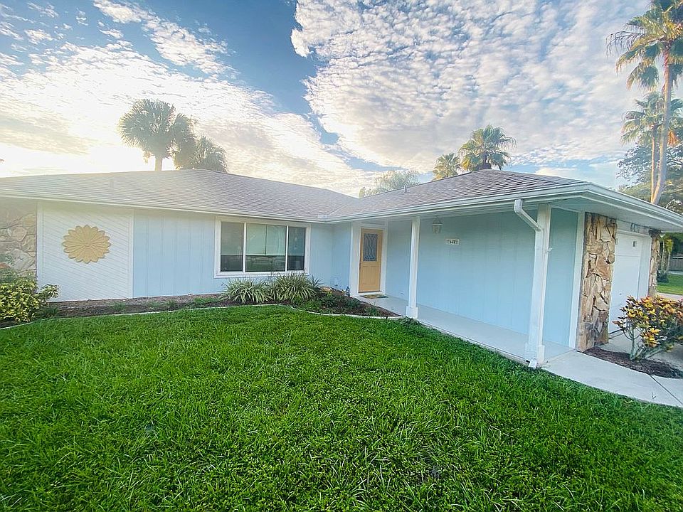 Welcome home to this adorable house in Whitfield Country Club Heights. This 3 bedroom 2 bath home has an open floor plan with updated kitchen, bathrooms and windows with hurricane/storm protection. New roof in 2020. Granite counter tops, stainless steel appliances and a built-in entertainment center with TV + electric fireplace included. Fenced yard with shell driveway to park a boat or an RV. No CDD or HOA fees